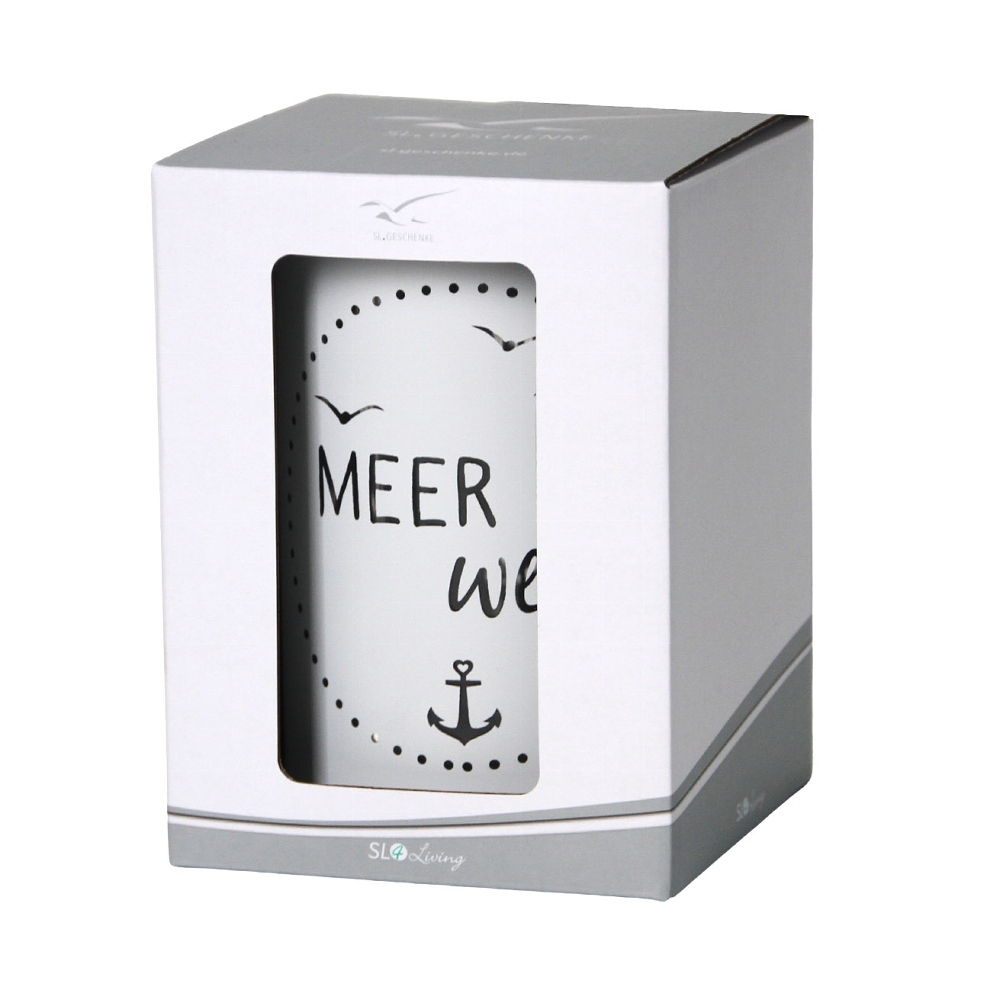 Schreibe die erste Rezension für „Glas-Windlicht Meer Weh Weiß-Silber 10×15 cm“