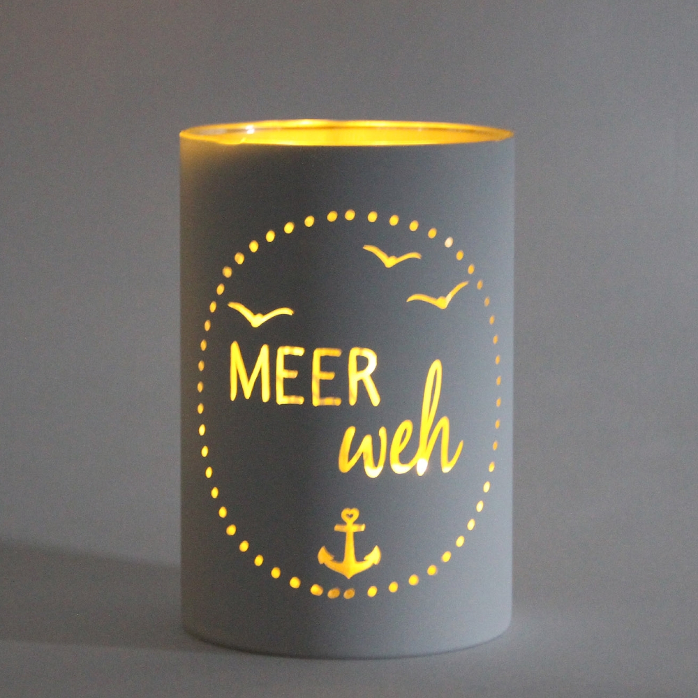 Glas-Windlicht Meer Weh Weiß-Silber 10×15 cm