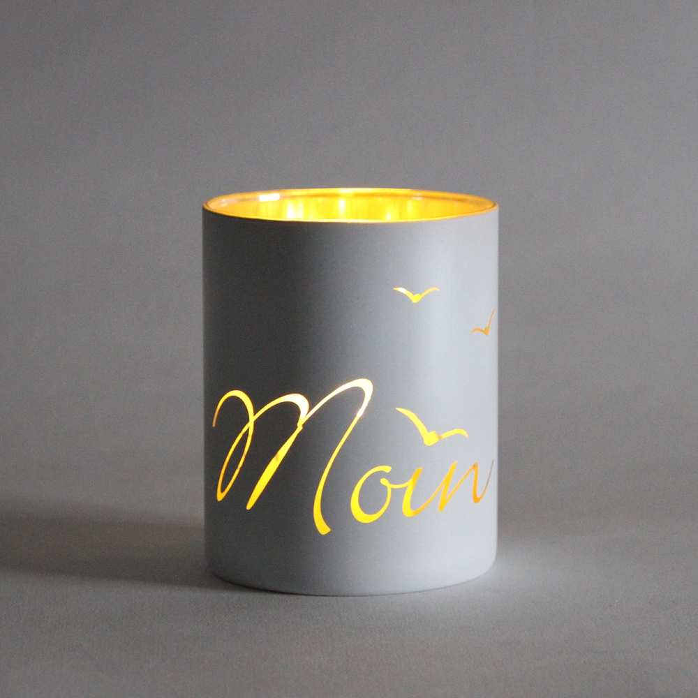Schreibe die erste Rezension für „Glas-Windlicht Moin Weiß-Silber 8×10 cm“